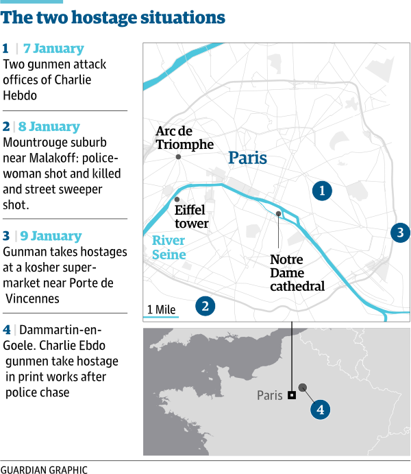 Image Two killed as gunman holds hostages in Kosher shop in eastern Paris 09 Friday Jan 2015 Posted by The Template News, Current Affairs and Sport Website in Africa πΊ, Arab World π, France, International News ≈ Leave a comment TagsParis Attacks France faces double hostage crisis http://www.bbc.co.uk/news/world-europe-30740115 Share this: Click to share on Facebook (Opens in new window) Facebook Click to share on LinkedIn (Opens in new window) LinkedIn Click to share on X (Opens in new window) X Click to share on Tumblr (Opens in new window) Tumblr Like Loading... Related