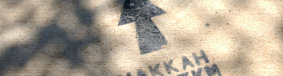 Sign pointing towards Mecca in reception area of Guantanamo Bay