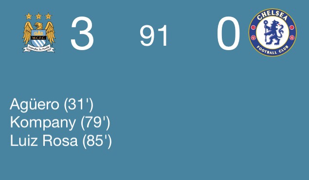 Image CITY CRUSH CHELSEA Manchester City 3 Chelsea 0 #PremierLeague 16 Sunday Aug 2015 Posted by The Template News, Current Affairs and Sport Website in Football β½οΈ, Sport π πΎ β½οΈ ≈ Leave a comment TagsAGUERO, Manchester City, Premier League Share this: Click to share on Facebook (Opens in new window) Facebook Click to share on LinkedIn (Opens in new window) LinkedIn Click to share on X (Opens in new window) X Click to share on Tumblr (Opens in new window) Tumblr Like Loading... Related
