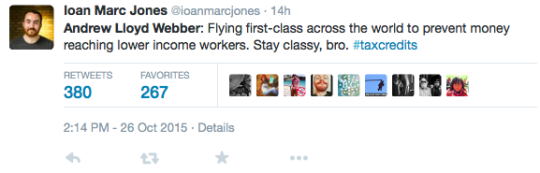 ANDREW LLOYD WEBBER ‘flew in from NEW YORK’ for the TAX CREDITS VOTE at the HOUSE of LORDS #UK #TaxCredits #HouseOfLords 27 Tuesday Oct 2015 Original size at 540 × 173 ≈ Leave a comment