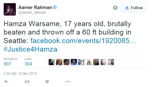 Image WERE TRUMP AND CARSON ‘RESPONSIBLE’ FOR HAMZA WARSAME’S MURDER #Justice4Hamza #Seattle #USA #NayabChohan #TemplateNews 10 Thursday Dec 2015 Posted by The Template News, Current Affairs and Sport Website in Crime πͺ π«, International News, Politics πΌ π³ πͺ, Race Relations, Social Media, USA πΊπΈ ≈ Leave a comment TagsBlack Lives Matter, Hamza Warsame Share this: Click to share on Facebook (Opens in new window) Facebook Click to share on LinkedIn (Opens in new window) LinkedIn Click to share on X (Opens in new window) X Click to share on Tumblr (Opens in new window) Tumblr Like Loading... Related