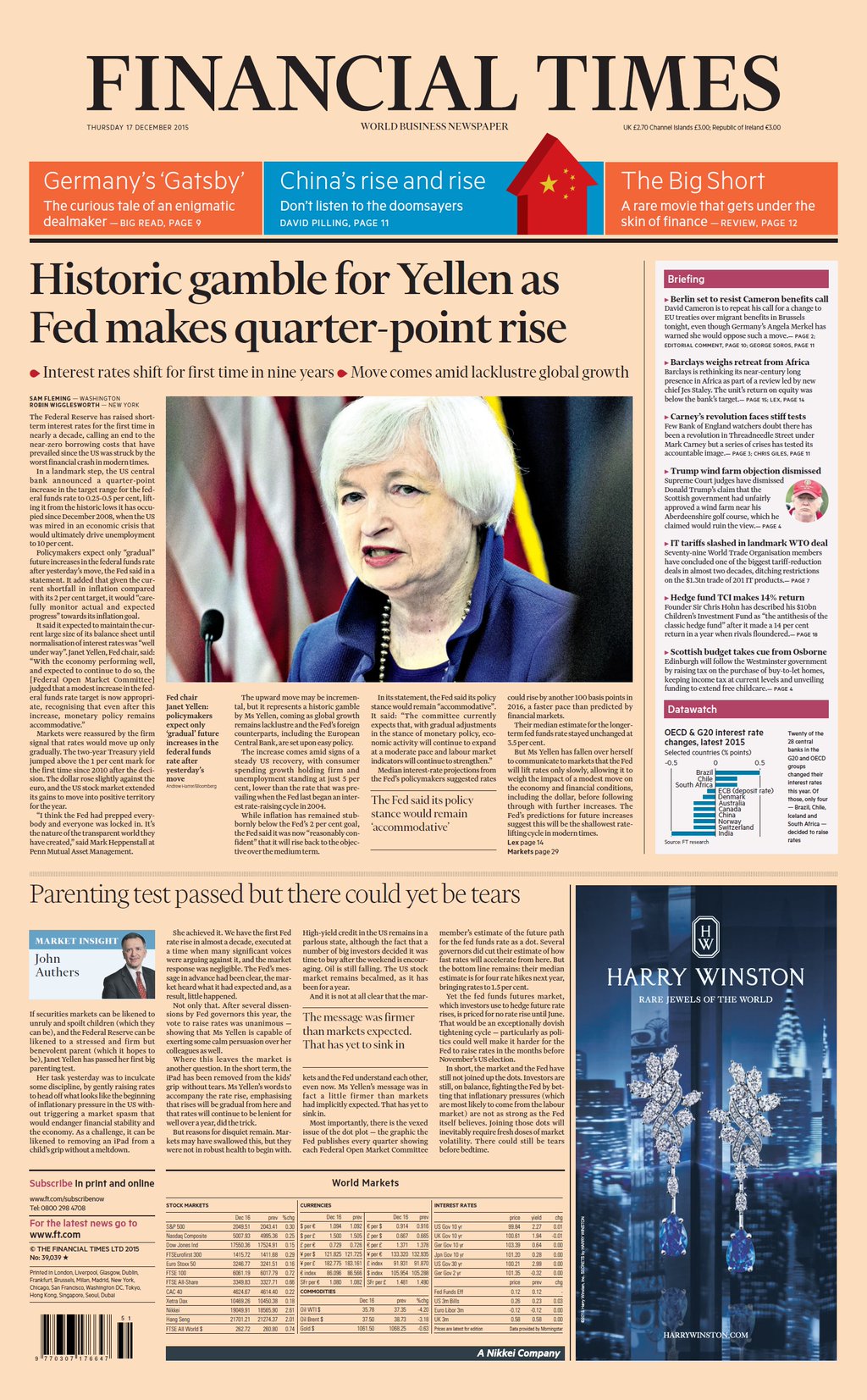 Image US FEDERAL RESERVE ANNOUNCES FIRST INTEREST RATE RISE SINCE 2008 #USA #FederalReserve #InterestRate #NayabChohan #TemplateNews 16 Wednesday Dec 2015 Posted by The Template News, Current Affairs and Sport Website in Breaking News πΊ ππ, Financial π· π² π¦, International News, USA πΊπΈ ≈ Leave a comment TagsFederal Reserve, Interest Rate Rise, USA πΊπΈ WASHINGTON – 0.25% rate rise after seven years at 0. Share this: Click to share on Facebook (Opens in new window) Facebook Click to share on LinkedIn (Opens in new window) LinkedIn Click to share on X (Opens in new window) X Click to share on Tumblr (Opens in new window) Tumblr Like Loading... Related