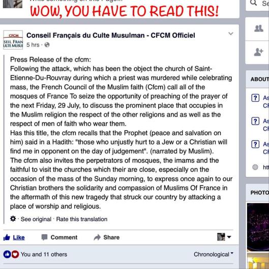 FRENCH MUSLIMS ATTEND SUNDAY MASS TO EXPRESS ‘SOLIDARITY’ AFTER FATHER JACQUES HAMEL MURDER #JacquesHamel #France #StEtienne #NayabChohan #TemplateNews #DistantEchoes #NayabChohanLIVEΒ