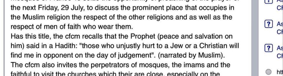 Image FRENCH MUSLIMS ATTEND SUNDAY MASS TO EXPRESS ‘SOLIDARITY’ AFTER FATHER JACQUES HAMEL MURDER #JacquesHamel #France #StEtienne #NayabChohan #TemplateNews #DistantEchoes #NayabChohanLIVE 31 Sunday Jul 2016 Posted by The Template News, Current Affairs and Sport Website in Arab World 🌎, Crime 🔪 🔫, Europe 🇪🇺, France, International News, Politics 💼 🗳 🪖, Race Relations, Religion, Social Affairs ≈ Leave a comment TagsDAESH, france, Isis, Jacques Hamel, Muslims, Terrorism 45.439695 4.387178 Share this: Click to share on Facebook (Opens in new window) Facebook Click to share on LinkedIn (Opens in new window) LinkedIn Click to share on X (Opens in new window) X Click to share on Tumblr (Opens in new window) Tumblr Like Loading... Related