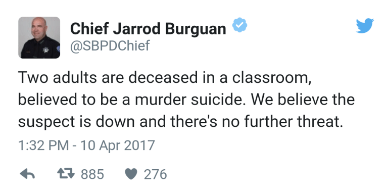 THREE KILLED – INCLUDING SUSPECT – AFTER SHOOTING AT A CALIFORNIA PRIMARY SCHOOL #SanBernardino #California #USA #NayabChohan #TemplateNews #DistantEchoes #NayabChohanLIVE 10 Monday Apr 2017 Original size at 1280 × 650 ≈ Leave a comment