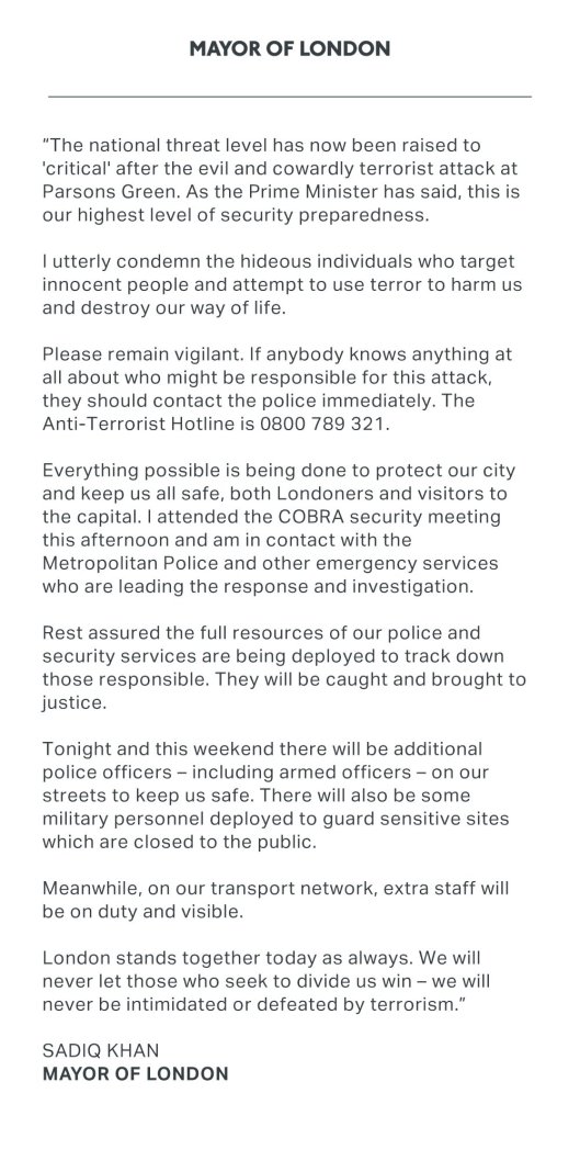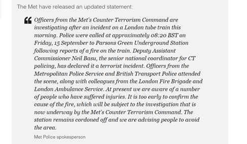 #LondonUndergroundBlast IS TERRORISM – @metpoliceuk .. ONE MAN CHARGED #BreakingNews #ParsonsGreen #London #UK #NayabChohan #TemplateNews #DistantEchoes #NayabChohanLIVE