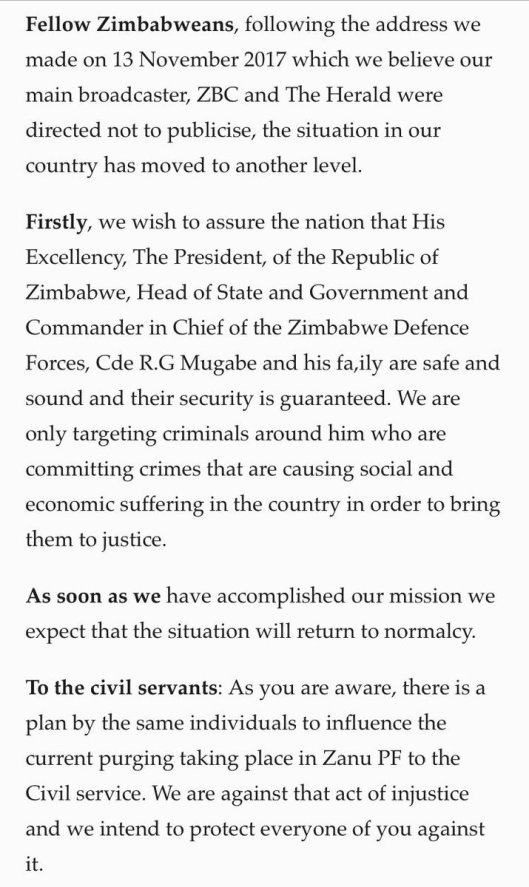 #Zimbabwe’s MILITARY DENIES IT’S CARRIED OUT A COUP AND SAYS #RobertMugabe IS SAFE #Zimbabwe #NayabChohan #TemplateNews #DistantEchoes #NayabChohanLIVE