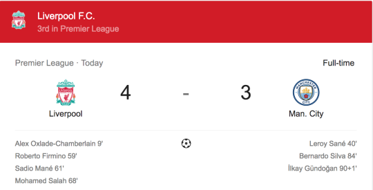 π LIVERPOOL END CITY’S UNBEATEN RUN Liverpool 4Β Manchester City 3 #PremierLeague #EPL #LIVMCI π₯ π 14 Sunday Jan 2018 Original size at 540 × 275 ≈ Leave a comment