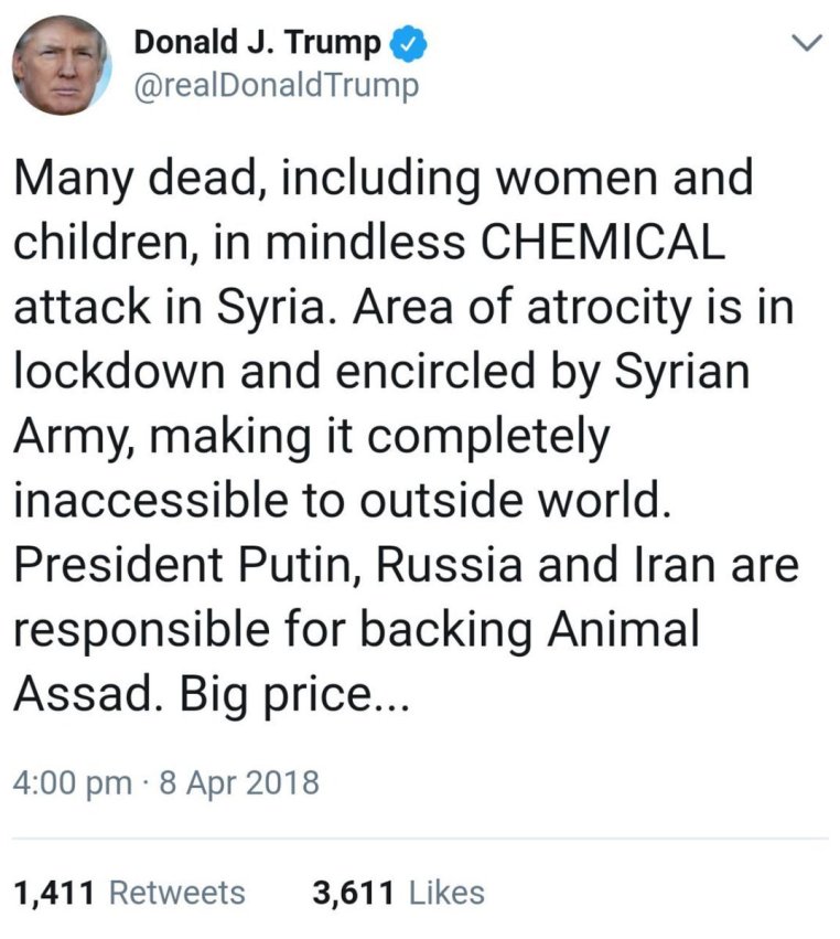 #Russia AND #Syria DENY A CHEMICAL ATTACK TOOK PLACE IN #Douma AS @realDonaldTrump WARNS OF A ‘BIG PRICE TO PAY’ #Ghouta #USA #NayabChohan #TemplateNews #DistantEchoes #NayabChohanLIVE 08 Sunday Apr 2018 Original size at 1074 × 1200 ≈ Leave a comment