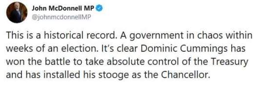 Boris Johnsonโs cabinet is in chaos. His new stooge in the Treasury will do nothing fix the decade of decline under the Tories. pic.twitter.com/U0FcRzhcwi