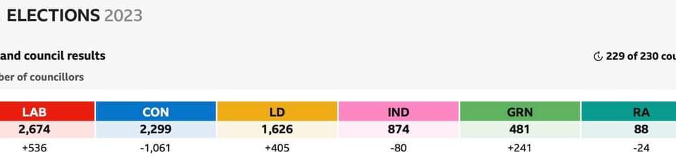 π³ #Conservative LOSSES PASS A THOUSAND COUNCIL SEATS WITH OVER A HALF GOING TO #LibDems AND #Greens π³ #Labour GAINS SOLID NOT SPECTACULAR βοΈ #LocalElections2023