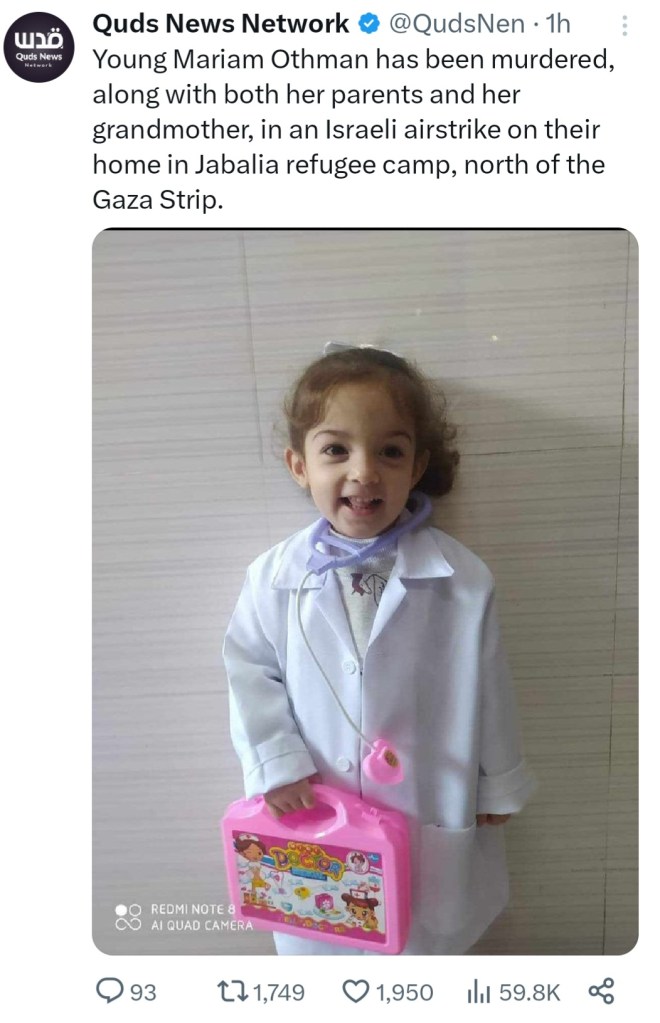 πͺ THREE THOUSAND PALESTINIANS KILLED AND 12,500 WOUNDED BY ISRAEL’S RELENTLESS AND UNCHECKED BOMBARDMENT OF GAZA π₯ WEST BANK, 55 KILLED (1,100 WOUNDED) π₯ US SAYS ‘ISRAEL’ IS DEFENDING ITSELF’π₯