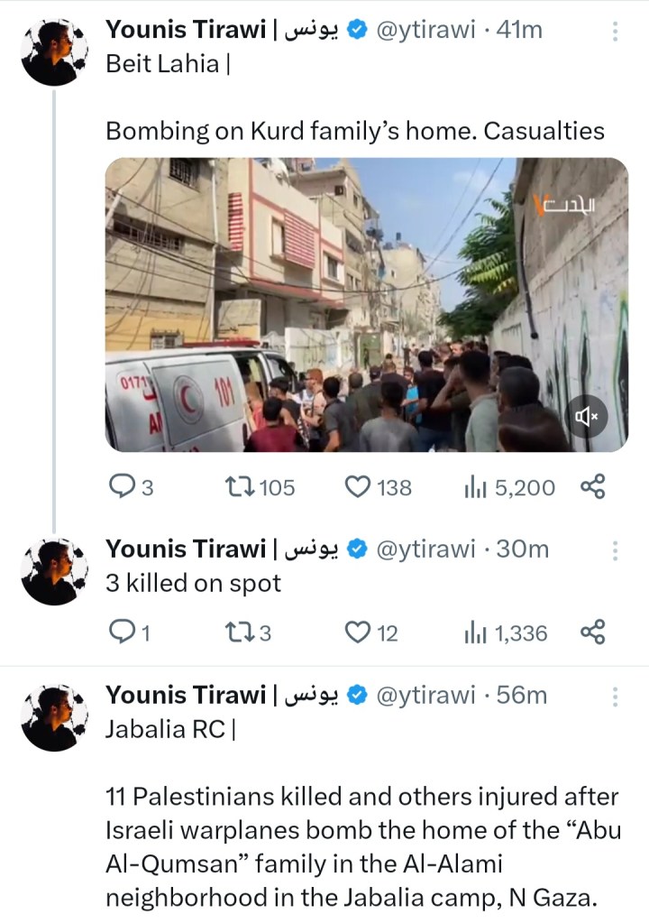 π₯ MORE ISRAELI STRIKES AFTER MASSIVE BOMBARDMENT OF GAZA LAST NIGHT π₯ ARMED ISRAELI SETTLERS ATTACKING PALESTINIANS IN OCCUPIED WEST BANK, JERUSALEM π₯ ‘ISRAEL HAS LOST ‘SIGNIFICANT NUMBERS’ OF ARMOURED VEHICLES IN FIRST 2 WEEKS – TURKISH SOURCES π₯
