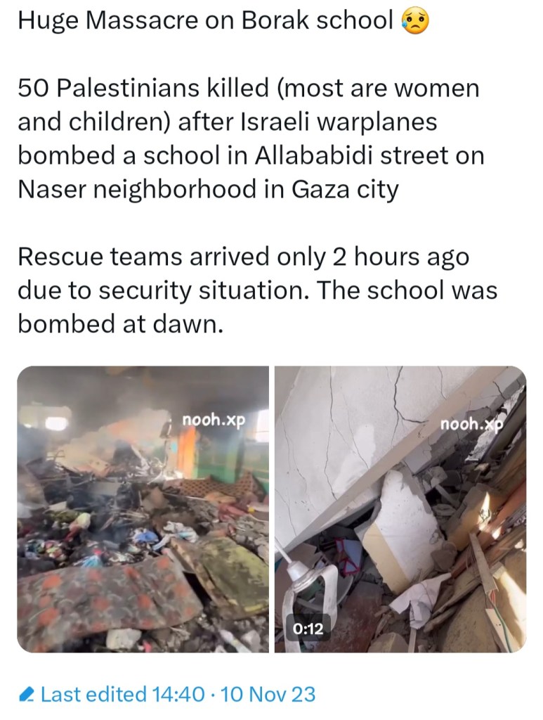 π₯ 50 PALESTINIANS MURDERED AT BORAK SCHOOL, TANKS CLOSE IN ON SHIFA HOSPITAL WHICH IS NEARLY EMPTY AFTER 13 KILLED LAST NIGHT, JERUSALEM HOSPITAL HIT BY SNIPERSπ₯ ISRAELI SOLDIERS FIRE AT ICU UNIT, AL QUDS HOSPITAL π₯ ISRAELI TANKS GETTING CLOSER TO GAZA CITY π₯