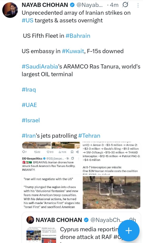 Image IRAN HAS LAUNCHED STRIKES ON US TARGETS & ASSETS IN THE MIDDLE EAST 02 Monday Mar 2026 Posted by The Template News, Current Affairs and Sport Website in Arab World π, Crime πͺ π«, International News, Politics πΌ π³ πͺ, Terrorism, USA πΊπΈ ≈ Leave a comment TagsIran, US, War Share this: Share on Facebook (Opens in new window) Facebook Share on LinkedIn (Opens in new window) LinkedIn Share on X (Opens in new window) X Share on Tumblr (Opens in new window) Tumblr Like Loading... Related