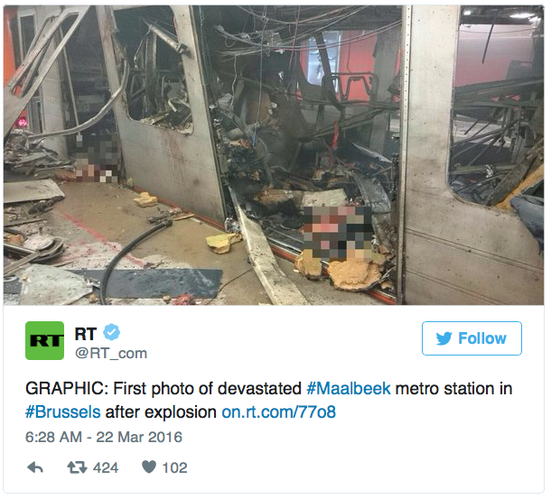 BRUSSELS –Β Figures from Belgian broadcaster. Twin blasts at Airport followed by blast at metro an hour later. 20 killed at Metro and 14 at airport. No claim of responsibility.