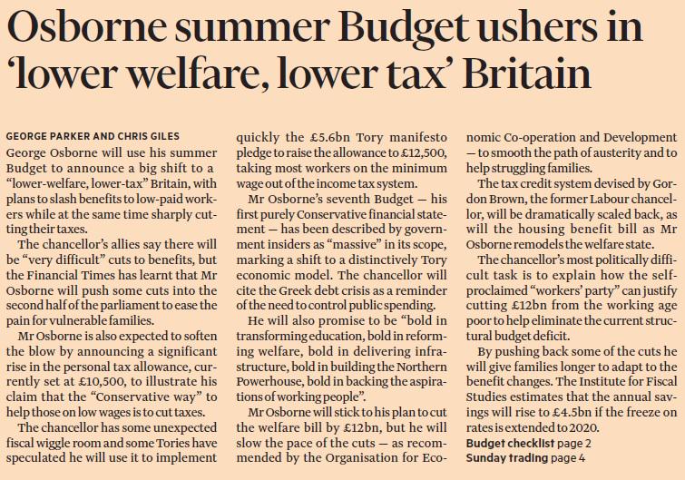 Chancellor introduces a ‘Living wage’ which will rise to Β£9 an hour by 2020, whilst student grants are abolished #Budget2015 #UK