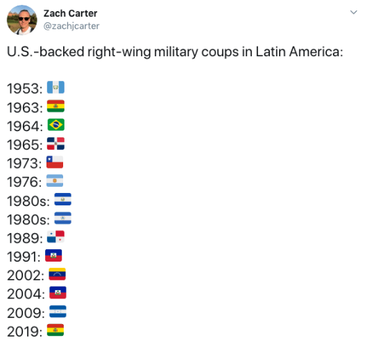 Image #Breaking BOLIVIAN PRESIDENT #EvoMorales RESIGNS AFTER PRESSURE FROM THE ARMY AND PROTESTS OVER HIS REELECTION EARLY THIS MONTH π§π΄ 10 Sunday Nov 2019 TagsBolivia, Distant Echoes, Evo Morales, Nayab Chohan, NayabChohanLIVE, Template News The squalid US-backed fanatics of the Bolivian right ransack the house of the countryβs elected president, Evo Morales. And the havoc is just beginning. Let no one call them βpro-democracy.β https://t.co/rwwvOSAEaA — Max Blumenthal (@MaxBlumenthal) November 11, 2019 God Bless Bolivia's Fascist Coup @pablonav1 CC: @elonmusk pic.twitter.com/89AO5DGtIg — Double Down News (@DoubleDownNews) July 28, 2020 Posted by The Template News, Current Affairs and Sport Website | Filed under Breaking News πΊ ππ, International News, Latin America, Politics πΌ π³ πͺ, USA πΊπΈ ≈ Leave a comment