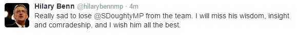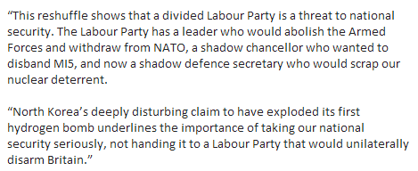 LABOUR RESHUFFLE – Kevan Jones, John Reynolds Shadow Transport, and Stephen Doughty have all resigned. ReynoldsΒ and Doughty resigned over the sacking of shadow Europe minister Pat McFadden. Jones resigned his defence ole over the replacement of Maria Eagle as shadow defence secretary with Emily Thornberry.Β Hilary Benn shadow foreign secretary remains.Β Meanwhile, Michael Fallon Defence Secretary gave this reaction to the Labour Reshuffle: