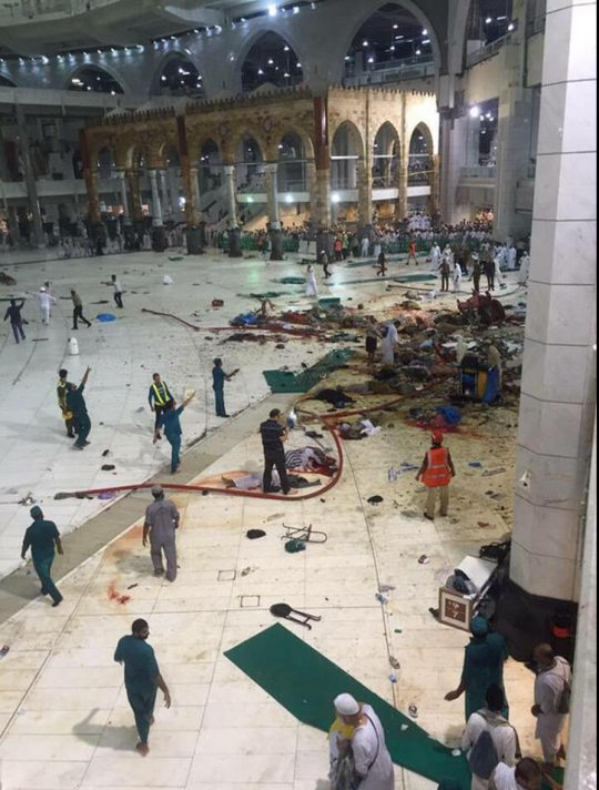 107 DEAD AND MORE THAN 230 INJURED AFTER CRANE CRASHES IN GRAND MOSQUE #Mecca #GrandMosque