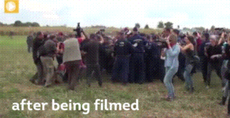 HUNGARY WILL CLOSE ITS BORDER FOR 30 DAYS TO ‘STEM THE FLOW’ .. EARLIER A HUNGARIAN CAMERAWOMAN WORKING FOR A FAR RIGHT TELEVISION STATION WAS FILMED DOING THIS .. AN INTERNAL MEMO AT THE N1 STATION ASKED JOURNALISTS TO AVOID USING REFUGEE CHILDREN IN NEWS PACKAGES ..